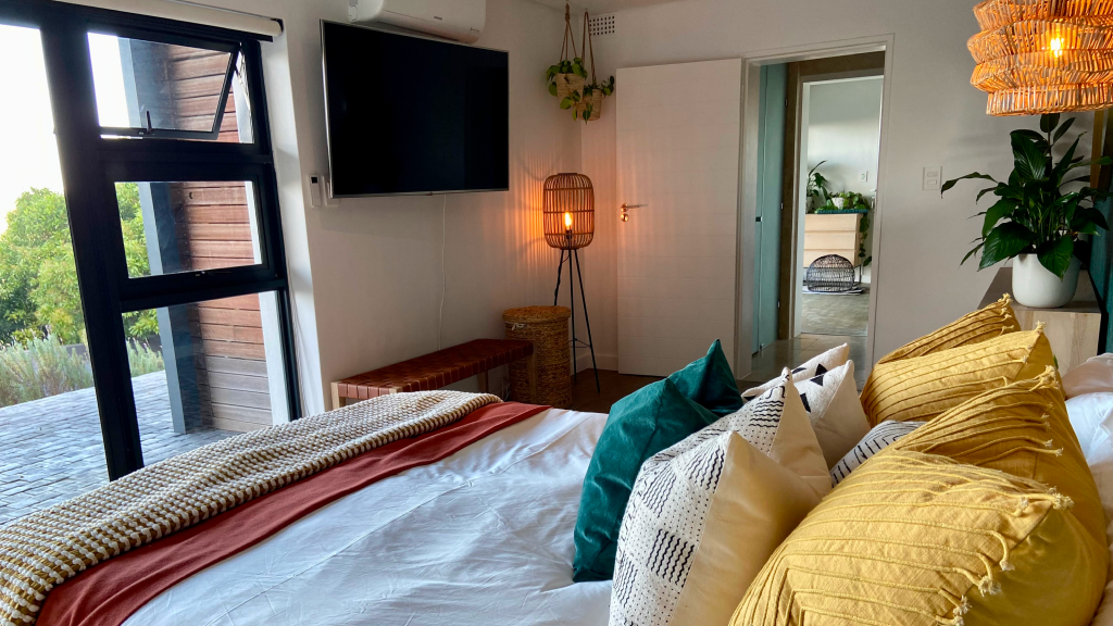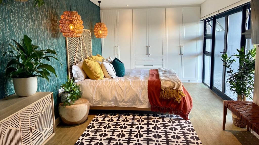 The brief? Create a space guests never want to leave! This beautiful space in Newlands, once used as a self-catering studio, needed to be converted into a warm, welcoming guest room that simultaneously made guests feel like a part of the family. Given complete creative freedom and the fact that it would only be for short-term guests, we chose to take a fun, bold boho approach to the design. We also took out the kitchenette and created more space for luggage and lounging. The room was such a huge hit with visitors that this was actually where our Two Birds Interiors journey began! Mission accomplished.
